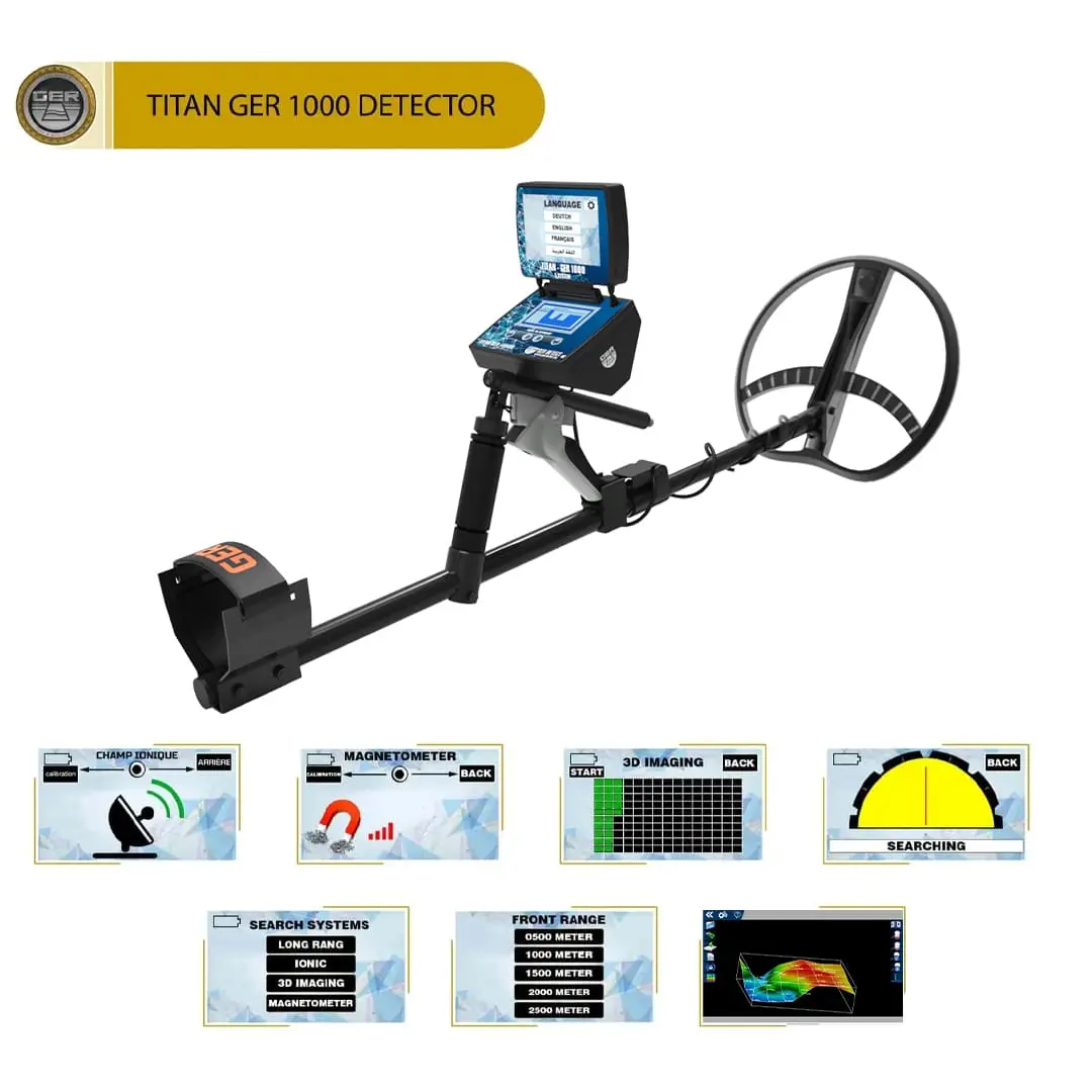 TITAN GER –1000 設(shè)備是一個(gè)完整的搜索站,擁有五個(gè)特定和創(chuàng)新的搜索系統(tǒng),專門用于探測地下埋藏的金、寶藏、貴金屬、隧道、通道、洞穴、空隙、鉆石和寶石。
